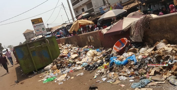 Malgré la présence de poubelles dans de nombreux quartiers de Conakry, une grande partie des déchets sont déversés directement sur le sol ou dans les caniveaux. Pire encore, certains habitants, par inadvertance, n’hésitent pas à mettre le feu aux bacs à ordures.